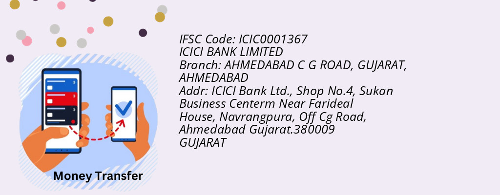 ICICI BANK IFSC Code AHMEDABAD - AHMEDABAD C G ROAD, GUJARAT branch is ICIC0001367 and located in GUJARAT state.