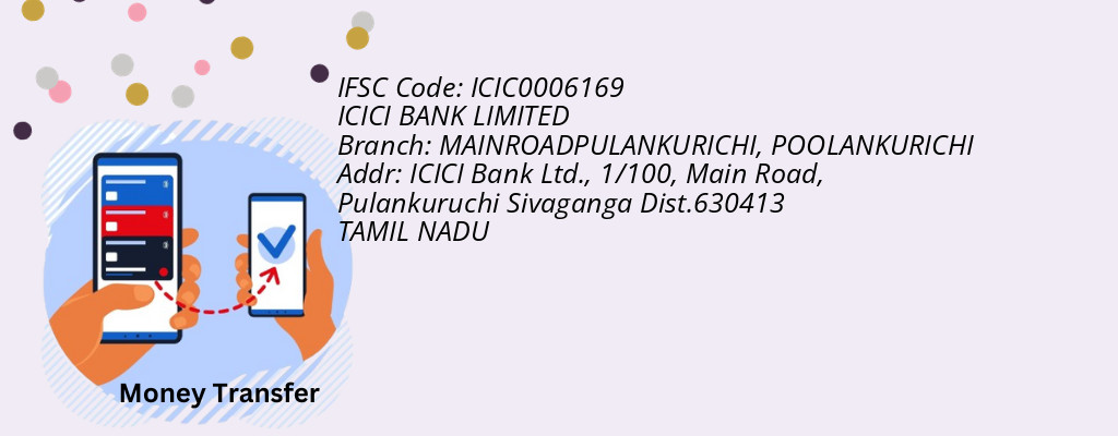 ICICI BANK IFSC Code POOLANKURICHI - MAINROADPULANKURICHI branch is ICIC0006169 and located in TAMIL NADU state.