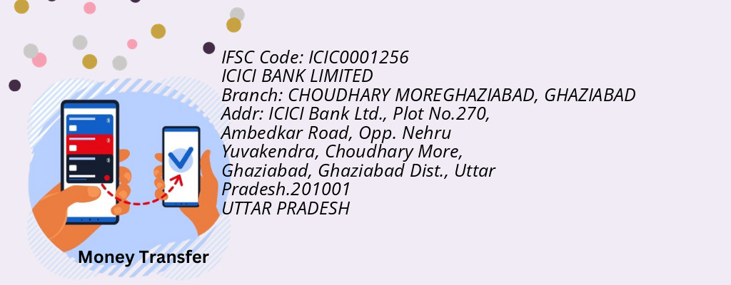 ICICI BANK IFSC Code GHAZIABAD - CHOUDHARY MOREGHAZIABAD branch is ICIC0001256 and located in UTTAR PRADESH state.