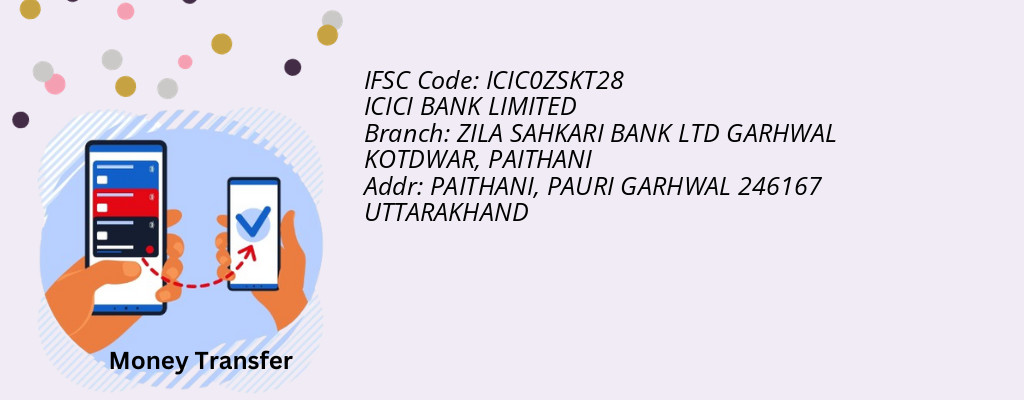 The code for the ICICI BANK ZILA SAHKARI BANK LTD GARHWAL KOTDWAR, PAITHANI branch is ICIC0ZSKT28.